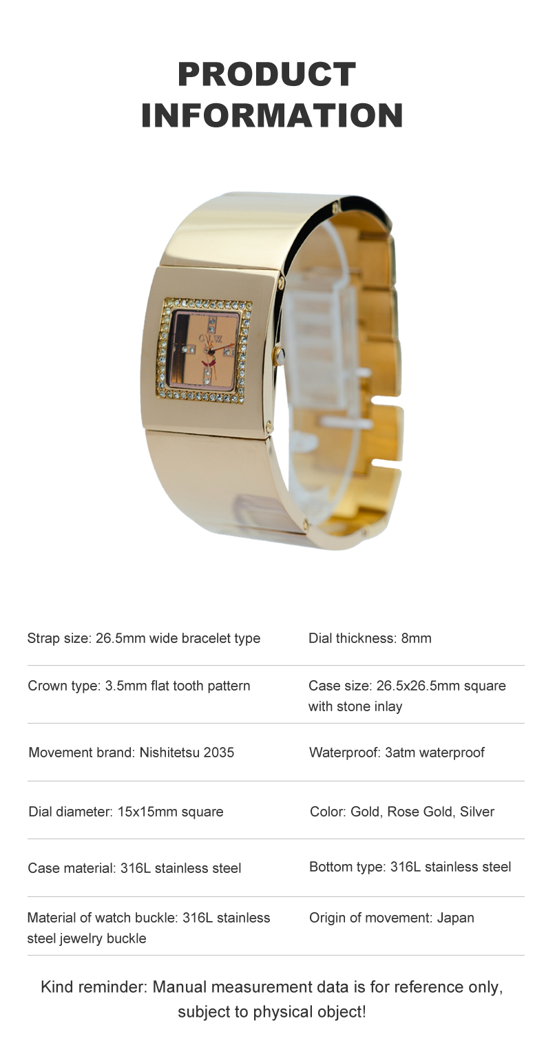 26.5mm wide bangle-shaped square ladies' watch