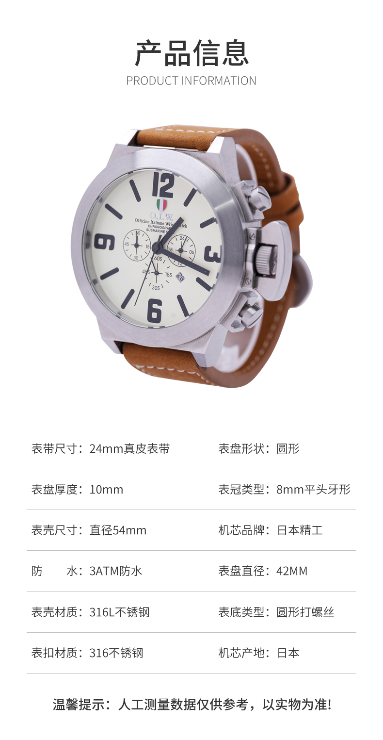 Strap size:24mm genuine leather strap